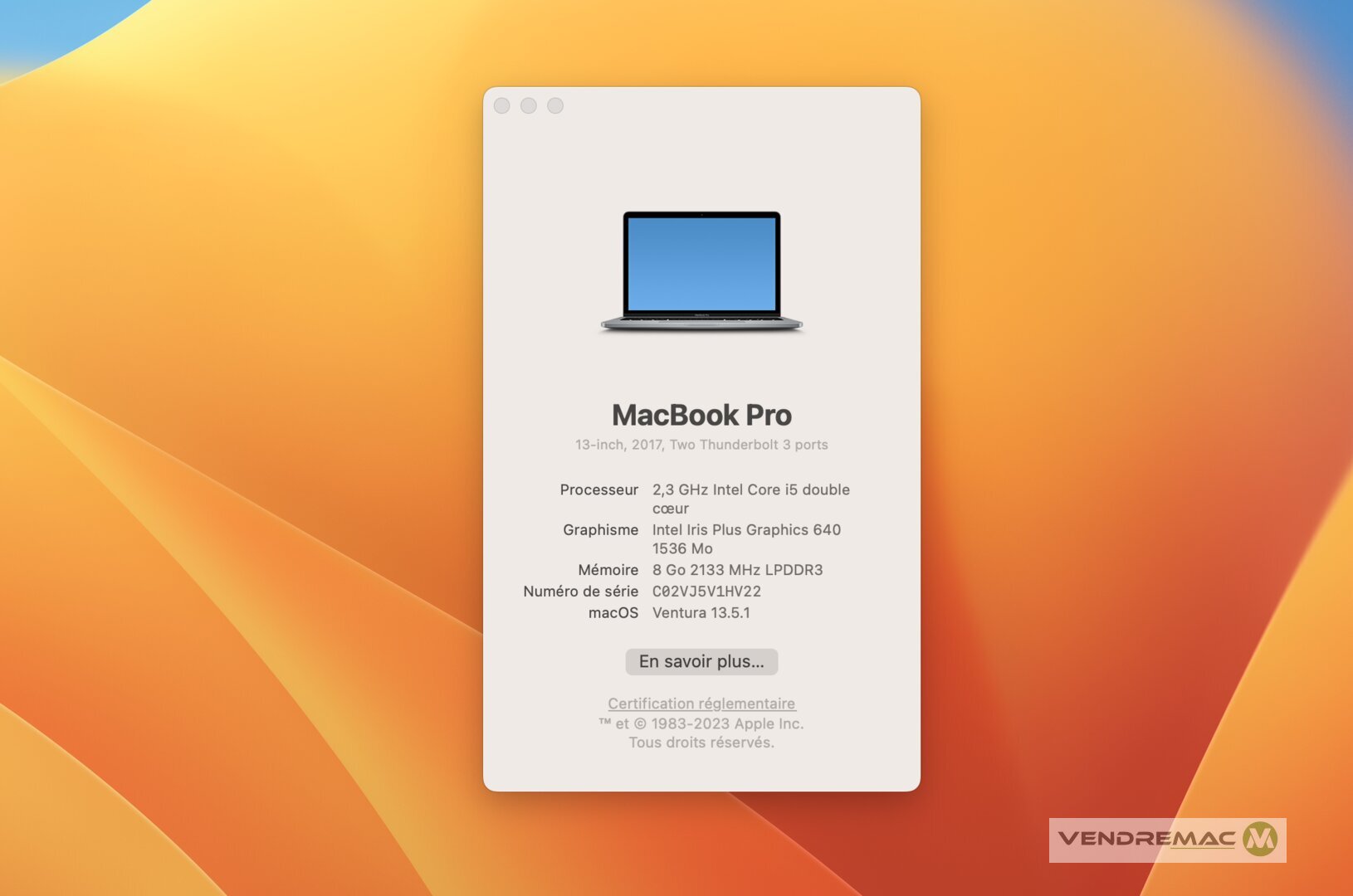- MacOS Ventura, aussi compatible avec des versions antérieurs. Possible d'installer Tahoe ou autre avec OpenCore.