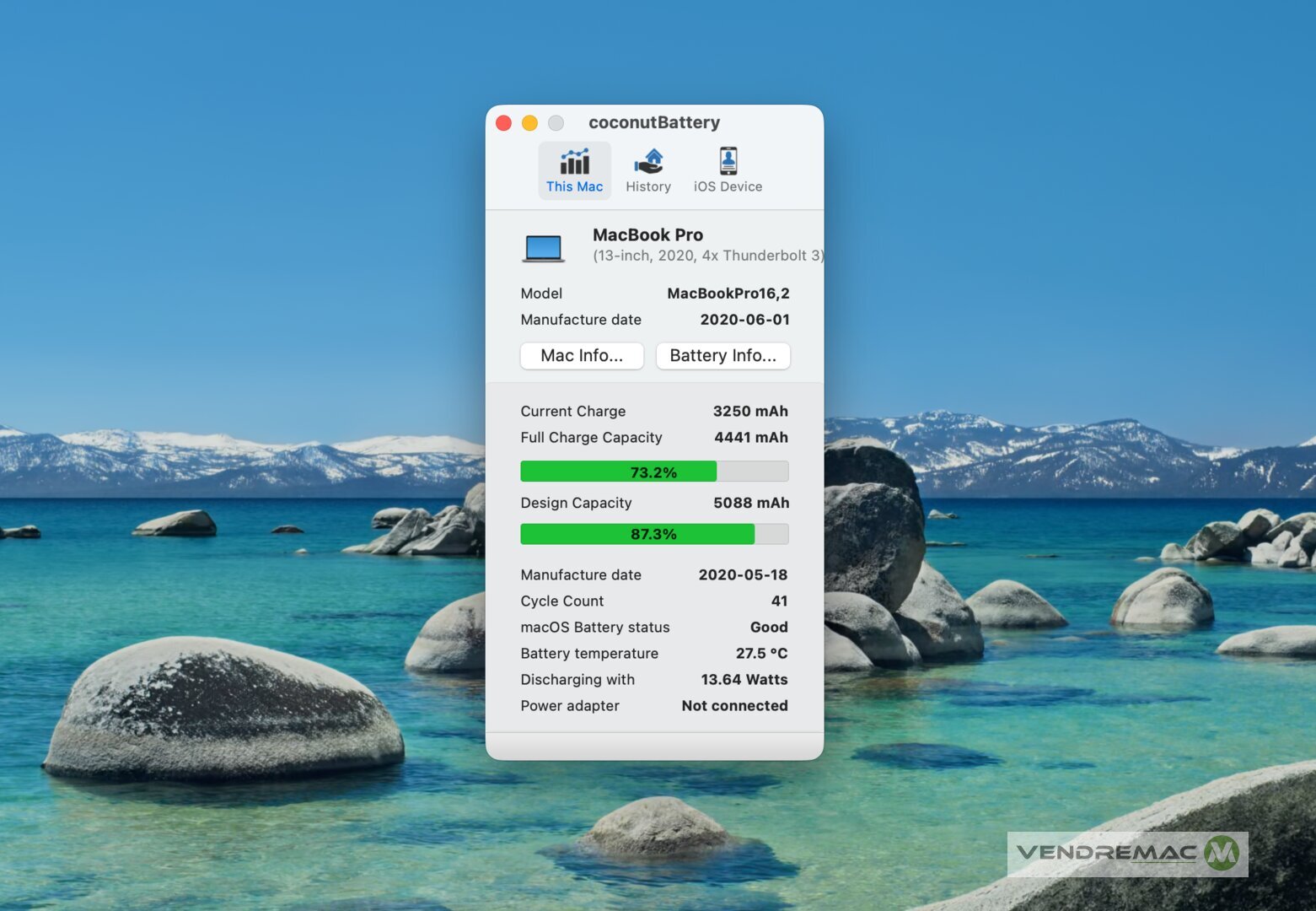 - Batterie à 87% de force, pour seulement 41 cycles de charge / utilisation.
