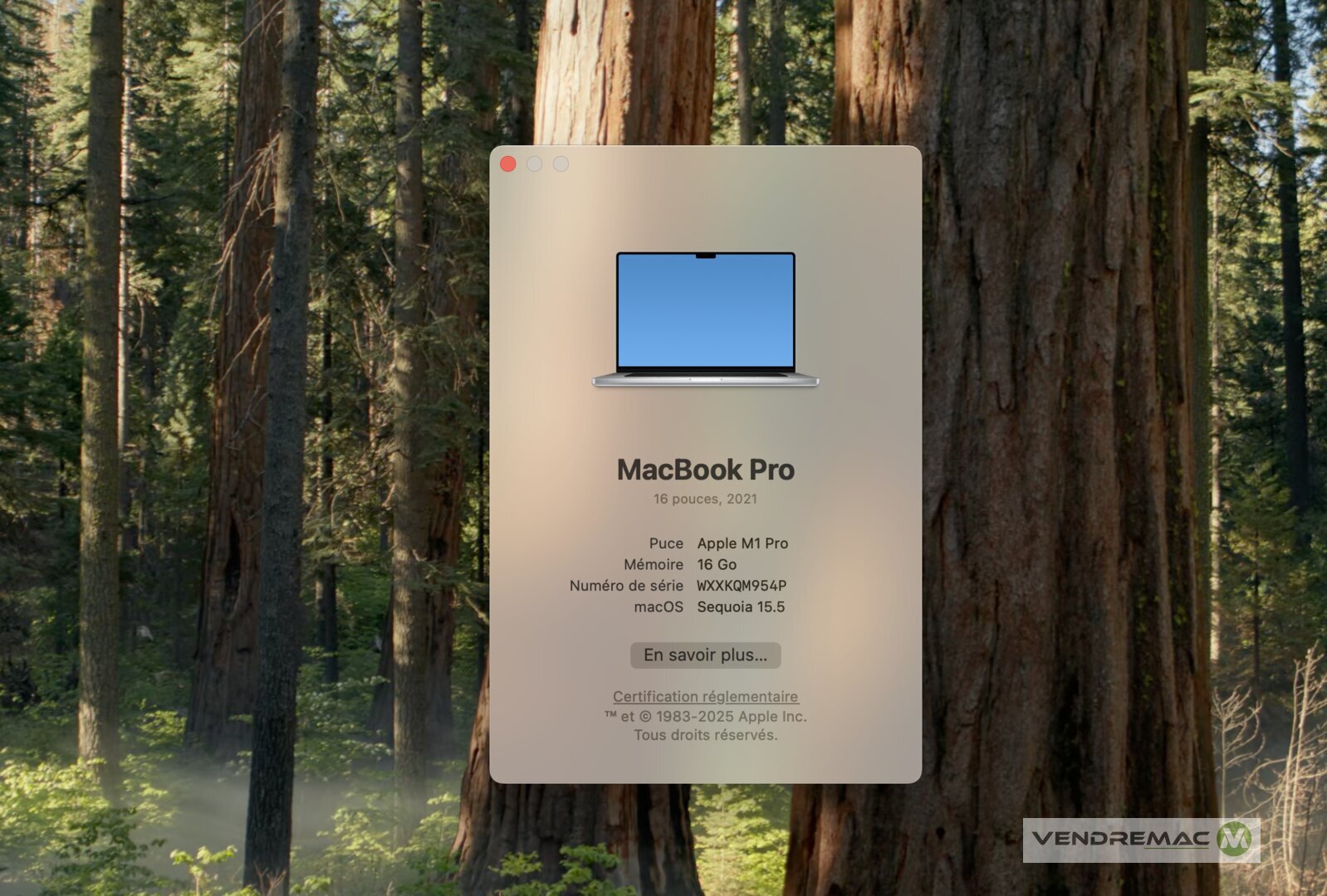 - Puce Apple M1 Pro avec 10 Cores CPU, 16 Cores GPU et 16 Cores "Neural Engine"