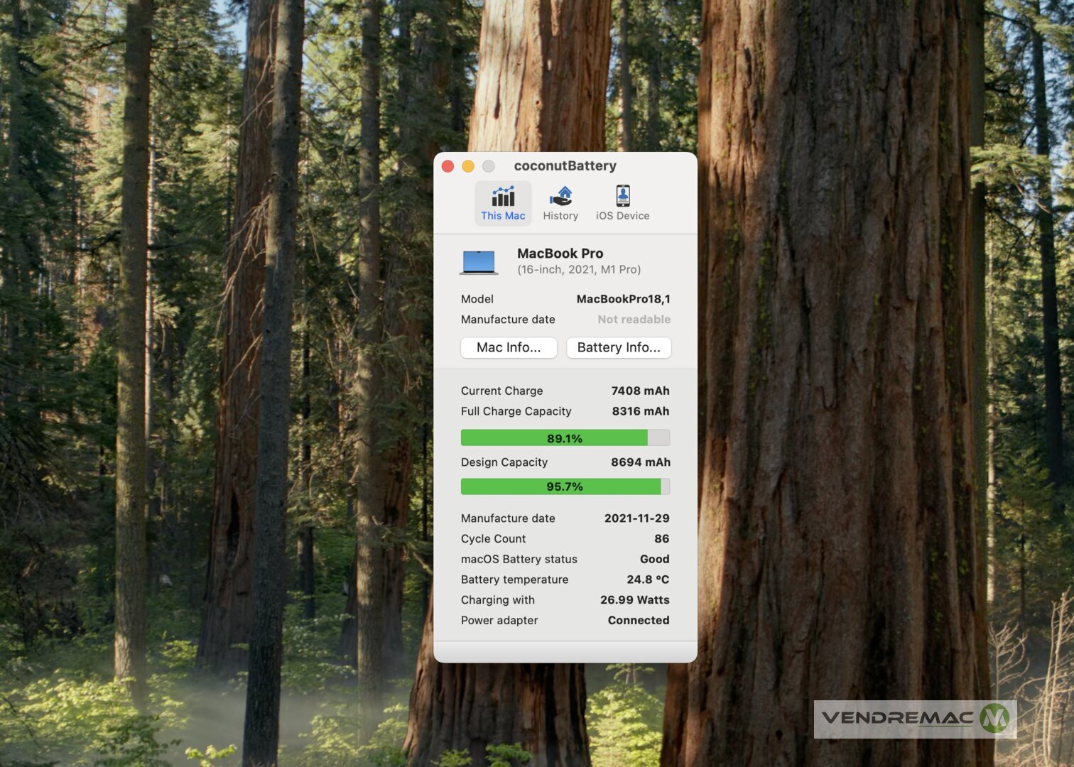 - Batterie à 98% de force, pour seulement 86 cycles de charge / utilisation.