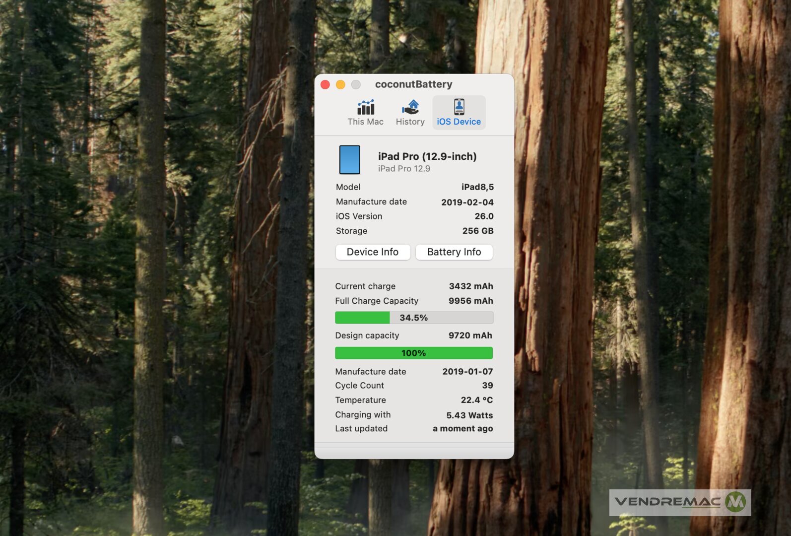 La batterie est en parfait état à 100% de force pour seulement 39 cycles de charge utilisés sur un total de minimum 1000 (comme annoncé par Apple).