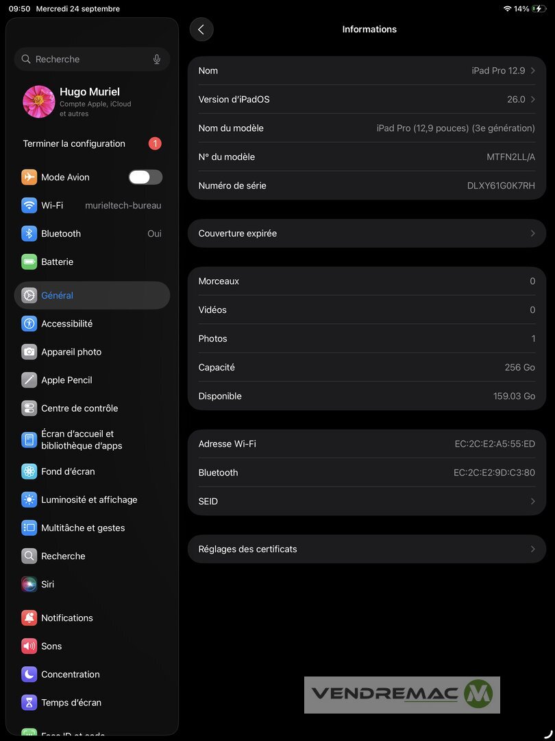 iPad Pro 12.9 2018 2019 3ème Gén. 256GB Wi-Fi - Excellent état
