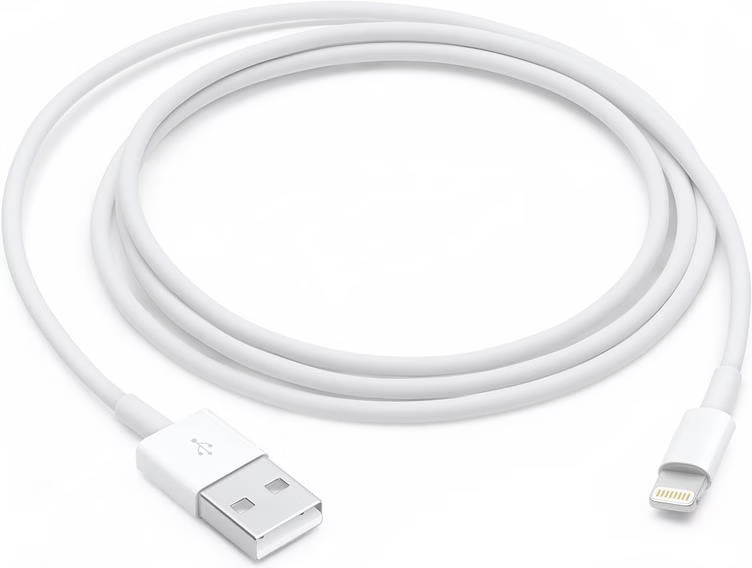 Câble Apple USB-A vers Lightning, 1 m de longeur, pour iPhones jusqu'au 14, ainsi que des iPad jusqu'à 9ème génération.
