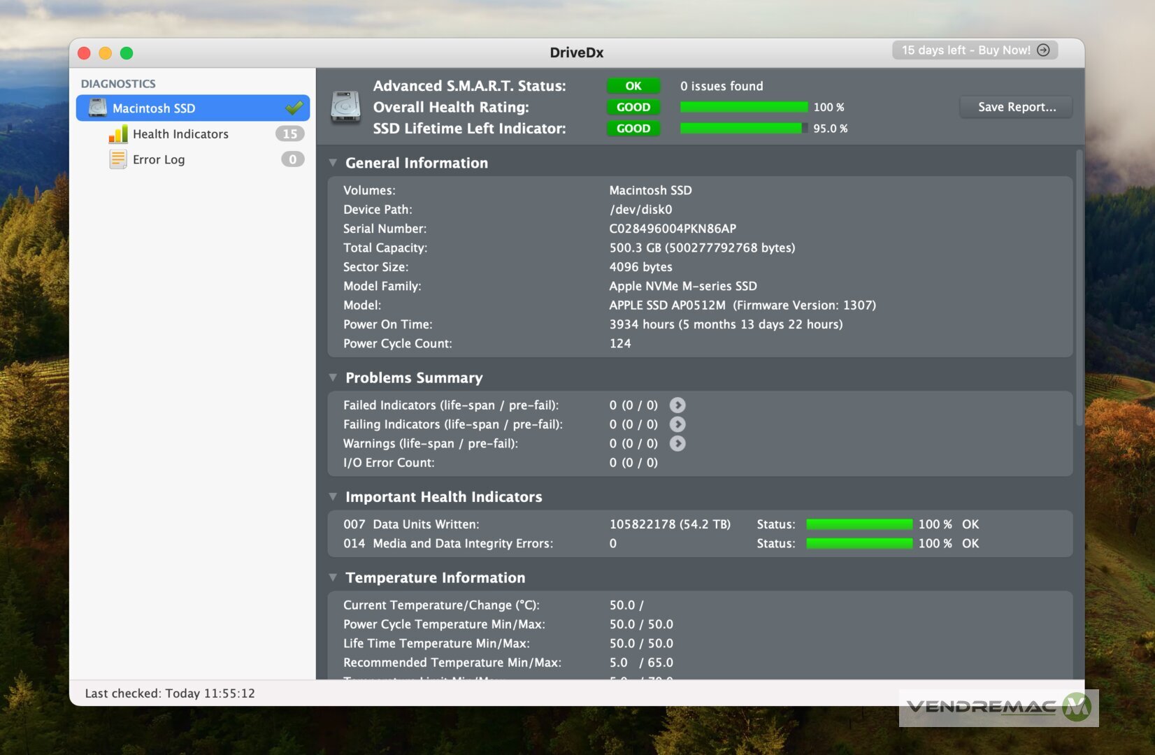 - 512 GB de stockage SSD, à 100% de santé et 95% de vie utile, seulement 5 mois et 13 jours d'utilisation cumulée, vitesses jusqu'à 2000 MB/s.