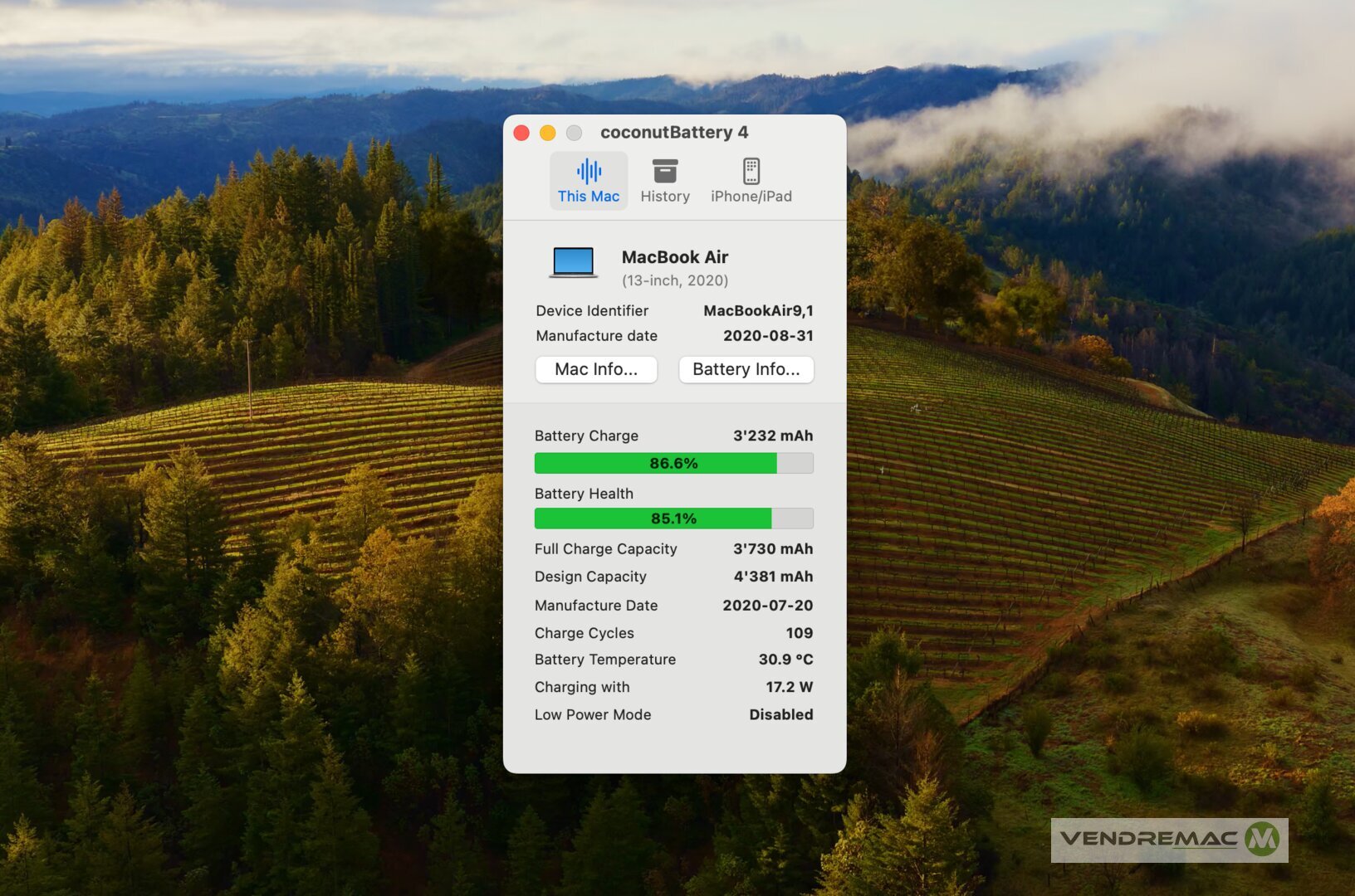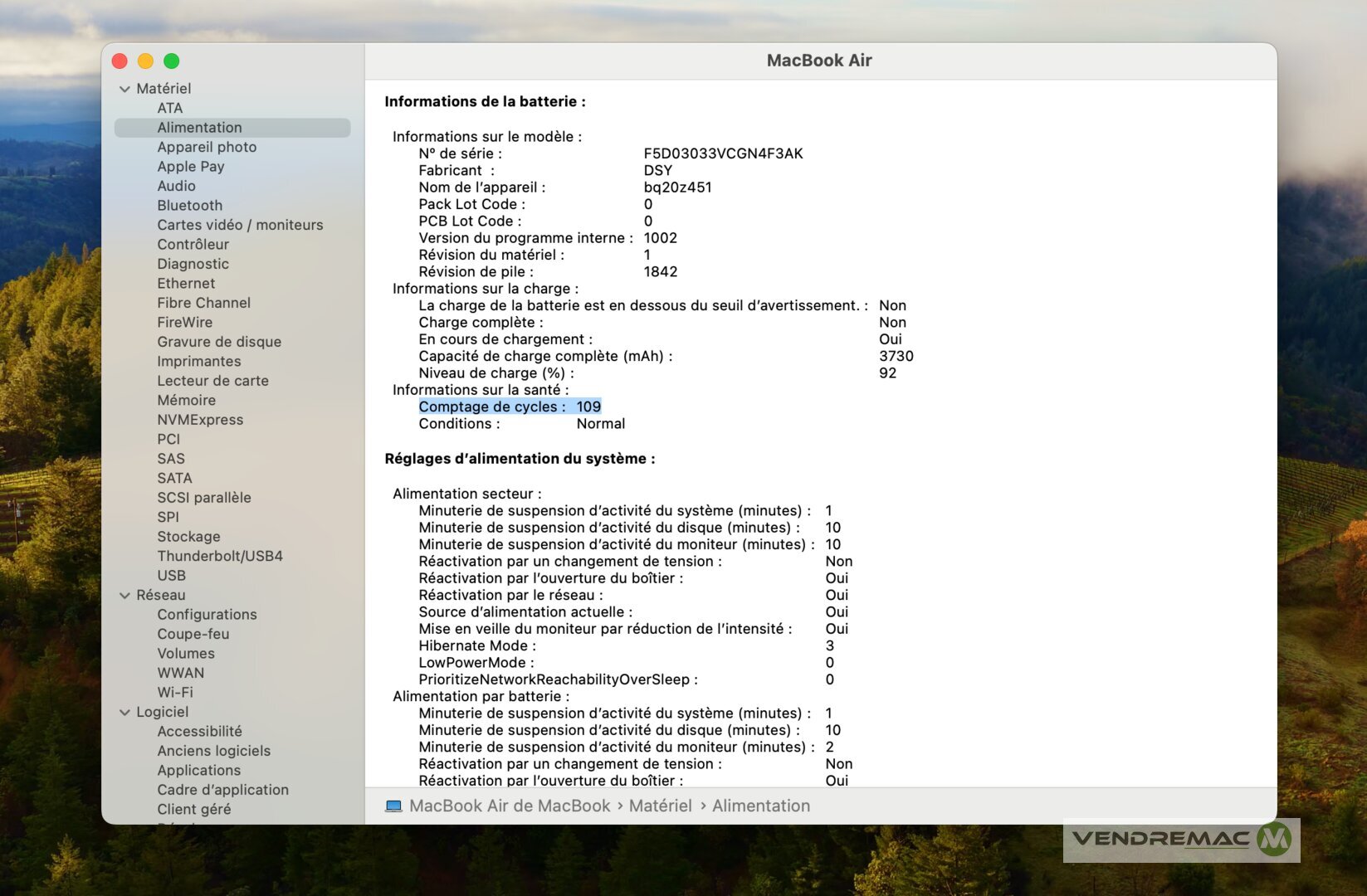 - Batterie à 85% de force, pour seulement 109 cycles de charge / utilisation.