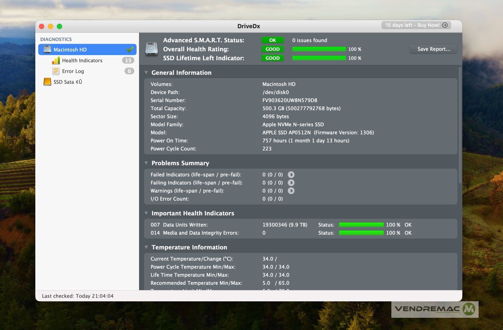 - 512 GB de stockage SSD, à 100% de santé et 100% de vie utile, seulement 1 mois et 1 jour d'utilisation cumulée, vitesses jusqu'à 1500 MB/s.