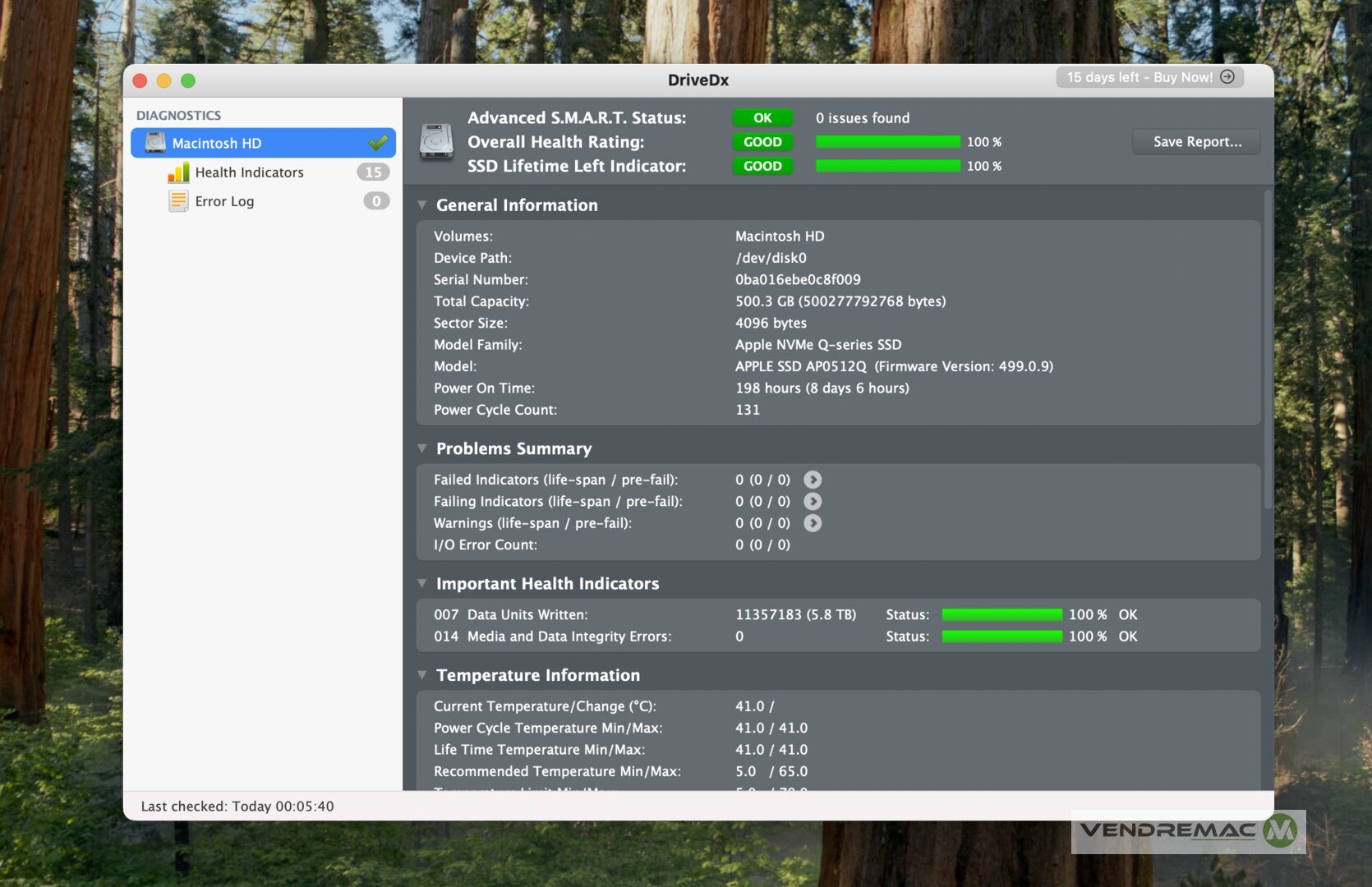 - 512 GB de stockage SSD, à 100% de santé et 100% de vie utile, seulement 8 jours d'utilisation cumulée, vitesses jusqu'à 2900 MB/s.