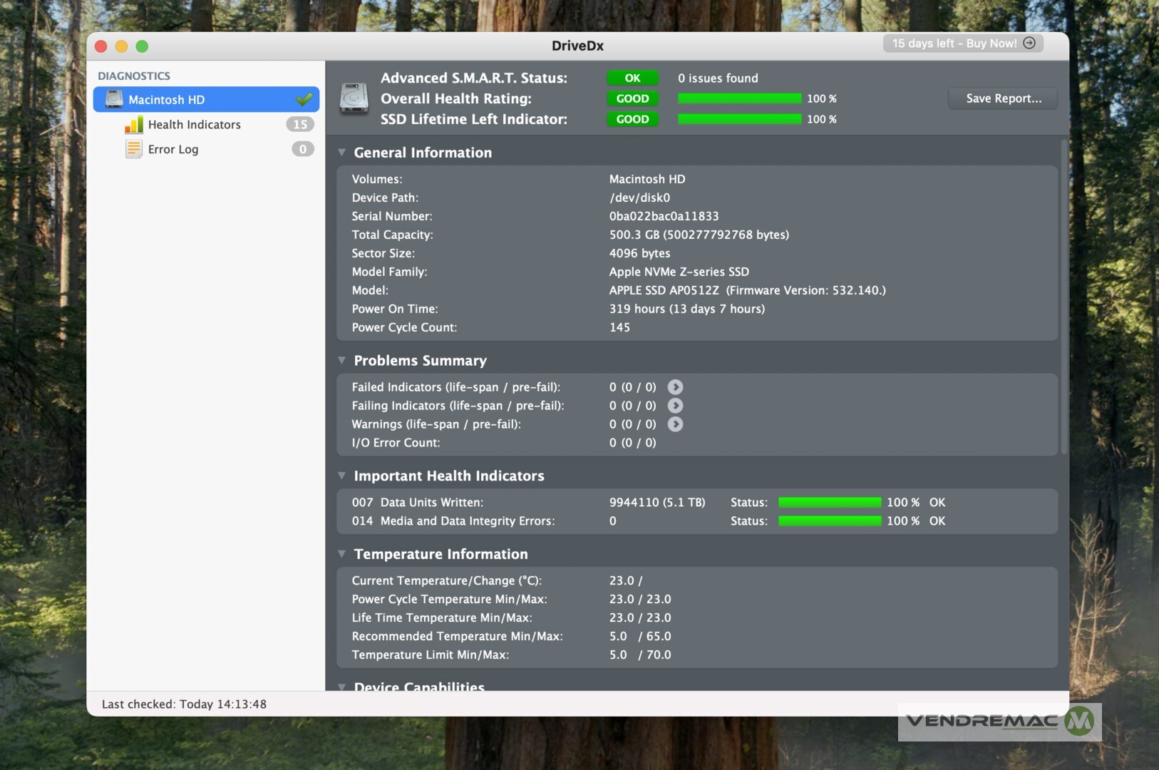 - 512 GB de stockage SSD, à 100% de santé et de vie utile, seulement 13 jours d'utilisation cumulée, vitesses jusqu'à 2900 MB/s.