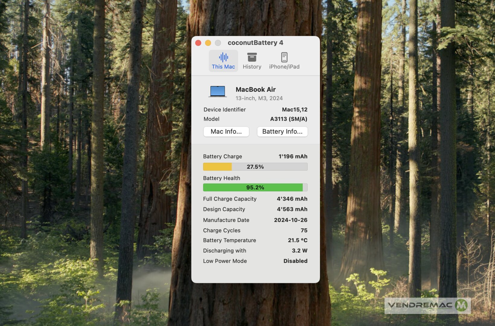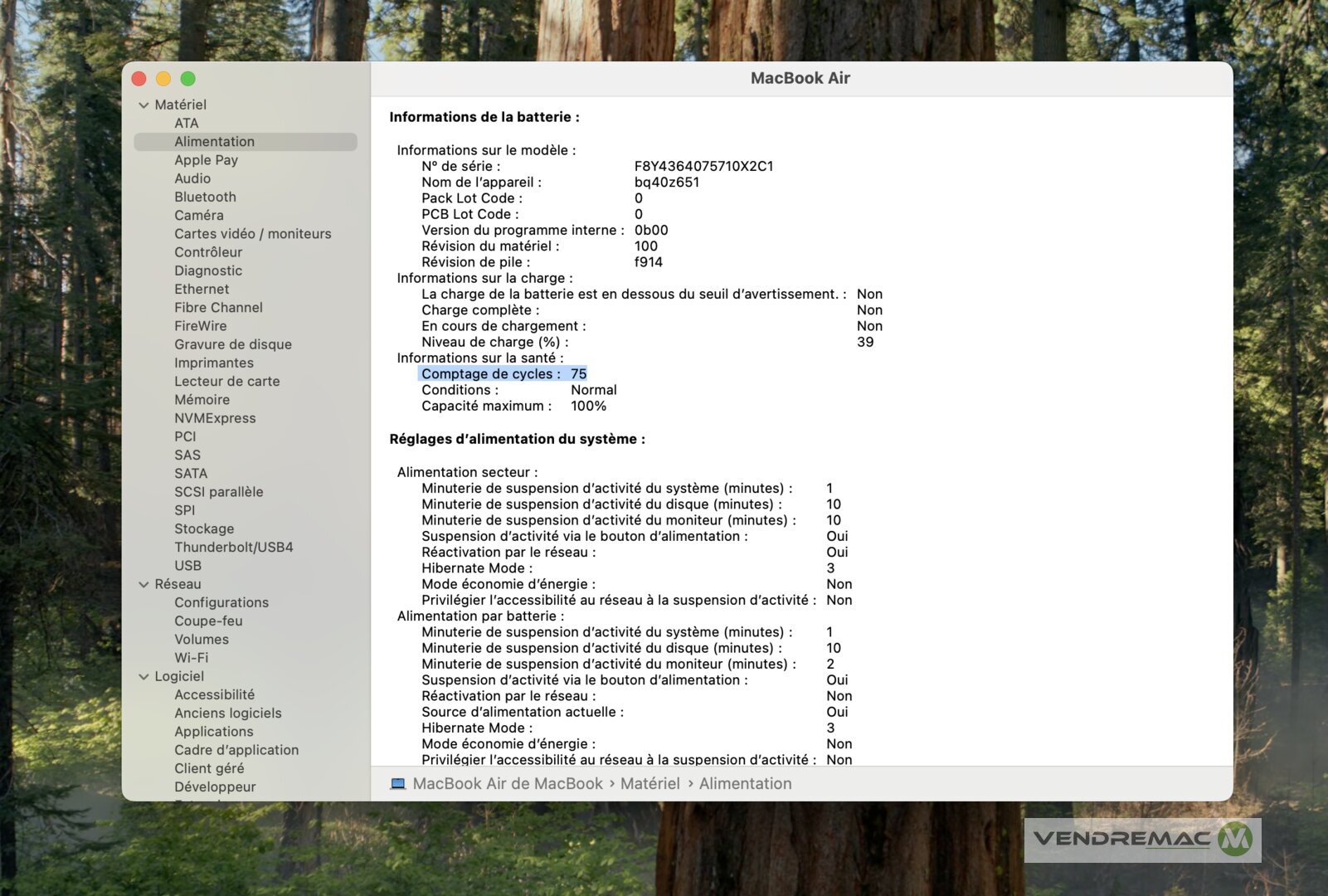 - Batterie pratiquement neuve à 95% de force pour seulement 75 cycles de charge.