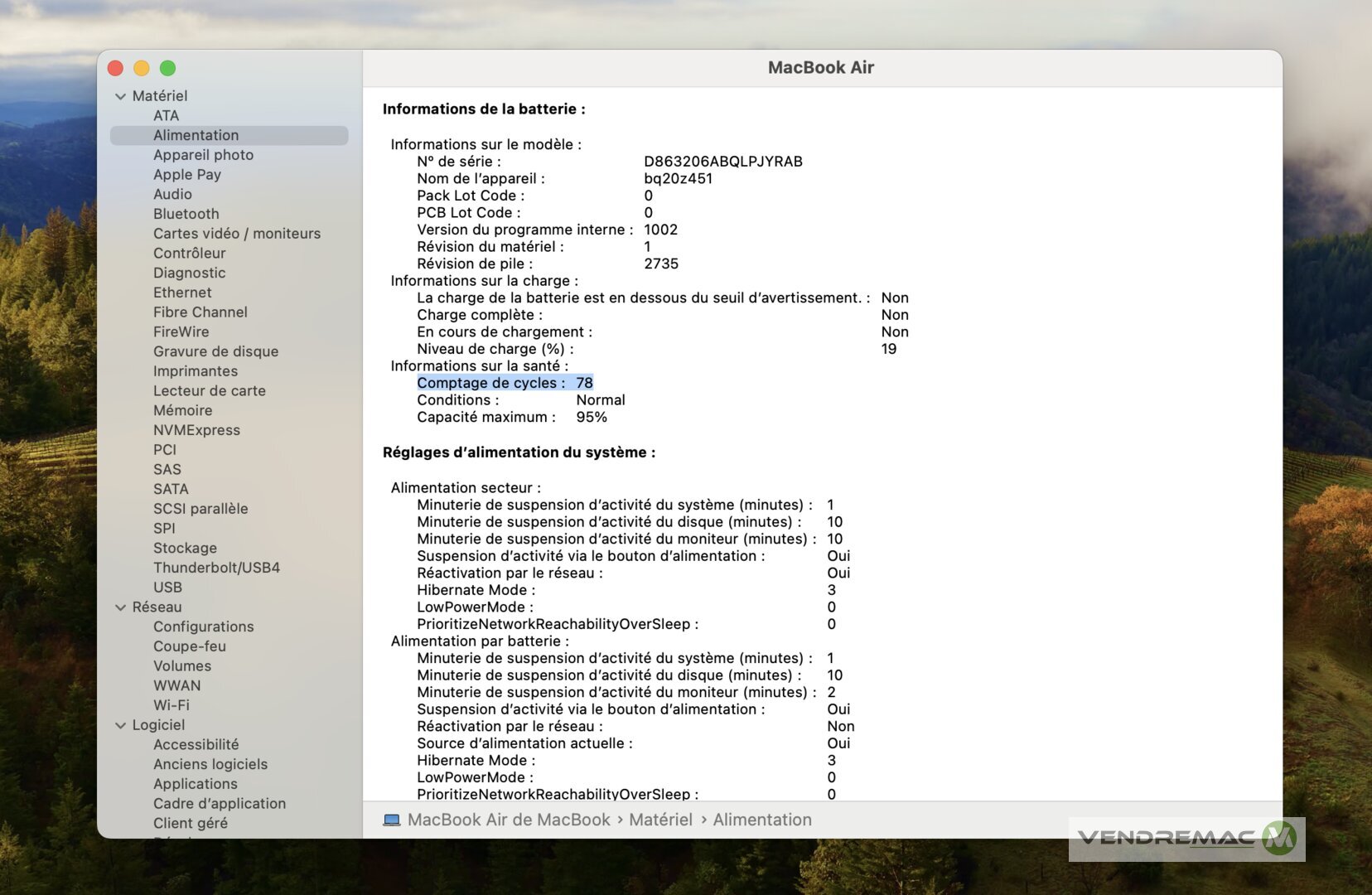 - Batterie à 95% de force, pour seulement 78 cycles de charge / utilisation.